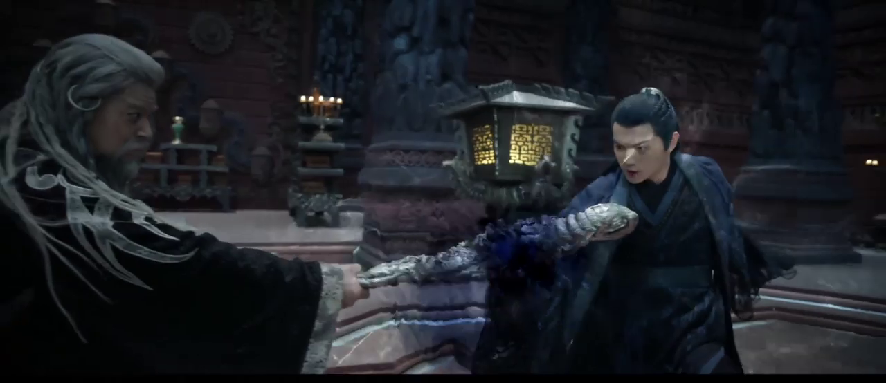Mo Qing and Yuan Jie fought. Mo Qing did not want to hurt Yuan Jie because he was loyal to Zhao Yao. However, Yuan Jie attacked Mo Qing, Mo Qing got blasted to the Sect Leader’s throne.