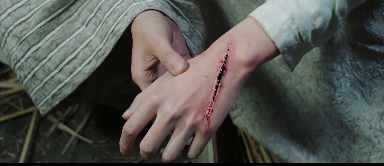 As Gu Han Guang was walking to him room, he saw something out the corner of his eye. Gu Han Guang attacked with two acupuncture needles but his attack was blocked. Then his left hand got cut in a counterattack by Luo Ming Xuan.