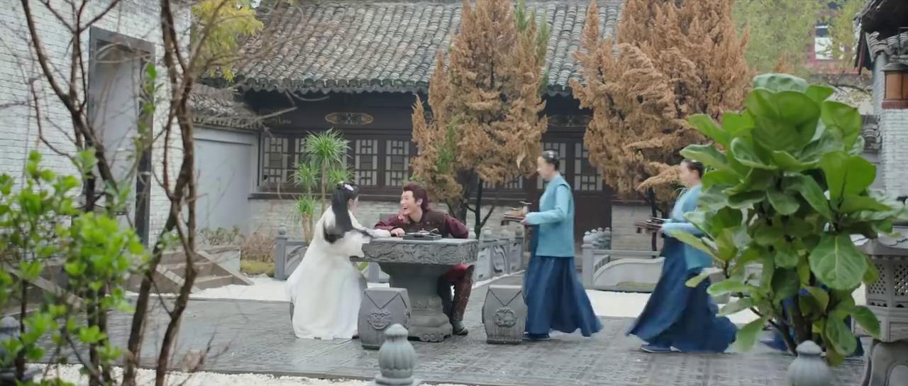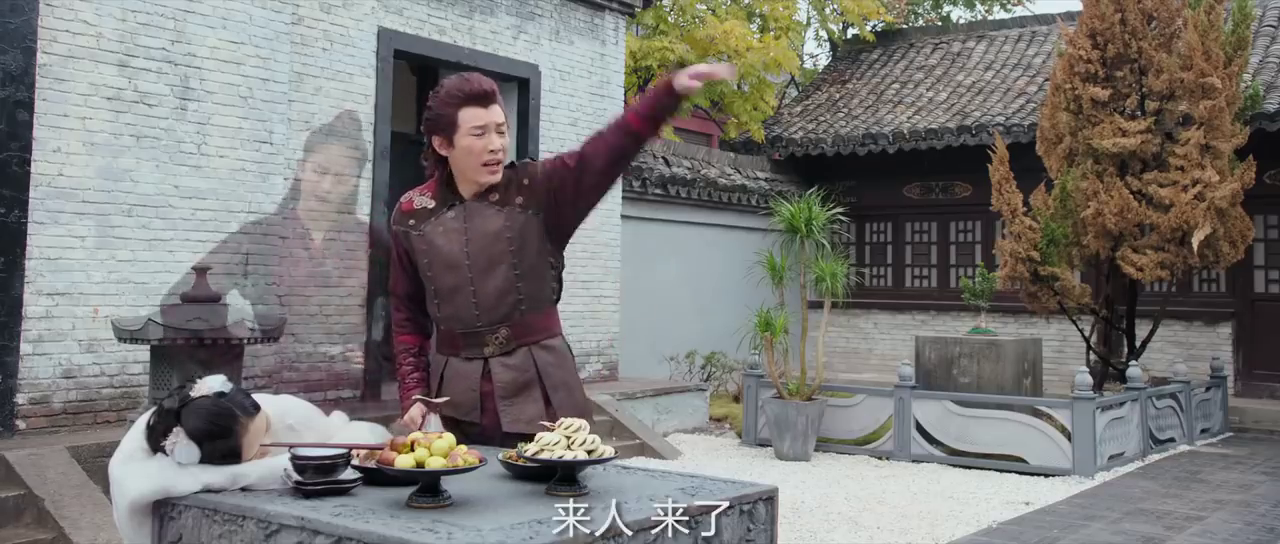 Jiang Wu’s eyes were half investigative and half contemplative. He looked at me for a moment, then waved his hand and suddenly one of the rooms’ doors pushed open and a group of maids walked into the courtyard. They each offered pastries and fine wine, and then withdrew again.
