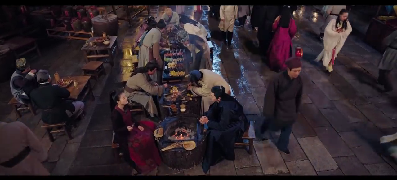 Sitting down at the small roadside stall, I ordered some food. At first, I was captivated by the grilled skewers’ aromas, so I did not think about anything else. I only paid attention to this meat skewer with sufficient ingredients and alluring spices. When I bit into the crunchy outer layer, the inside was juicy, it was crispy and tender, and left a savory taste in my mouth. I excitedly ate ten skewers in succession until my stomach was a bit full. Then I looked up and saw Mo Qing intently staring at me.