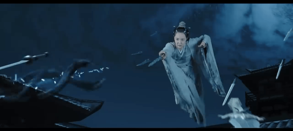A “swish” sounded beside my ear, she had taken the crimson lighted male sword and quickly stabbed it towards me. I turned to block, but I never thought that the male sword controlled by Liu Su Ruo would change direction and turned directly towards Shen Qian Jin’s back for a killing move.