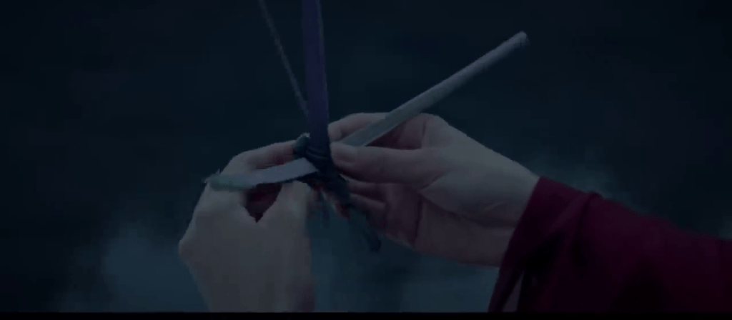I casually plucked a long piece of leaf, weaving it in my hands by the light of the moon. It was a technique that my grandfather taught me in my childhood. I folded the leaf into a butterfly, and presented it to Mo Qing. He looked at it, but did not rush to take it, he just lightly touched the butterfly’s wings.