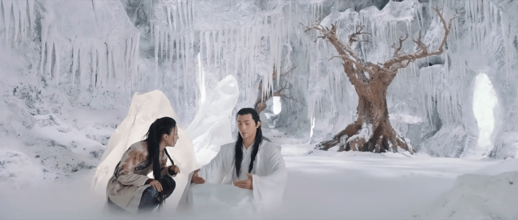 Looking down from this height, this place appeared to be like… The glaciers that I saw when I returned to my body after I took the Resurrection Pill. Could it be that… Qin Qian Xian hid my body here? Inside Su Mountain’s magic array?