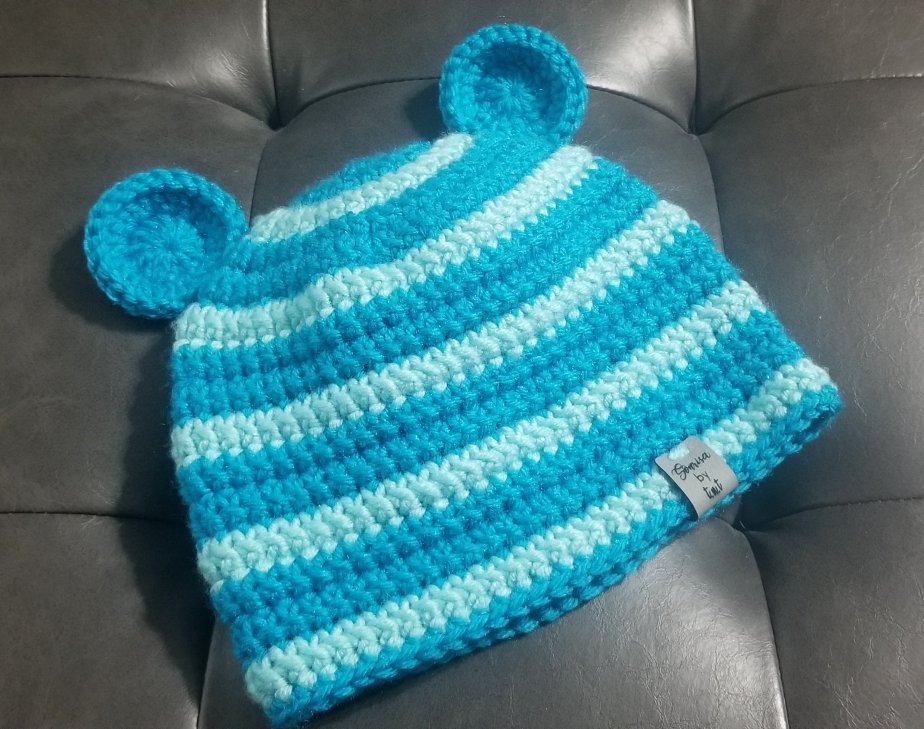 I was commissioned by the same lady to crochet a baby beanie with bear ears for her great-nephew. She wanted a blue one and I wanted to use 2 different blues because I have a lot of yarn remnants in my stash that I had to destroy.